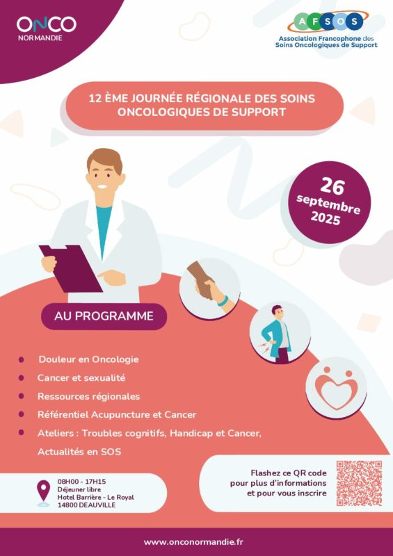 La 12ᵉ édition de la Journée Régionale des Soins Oncologiques de Support (SOS) se tiendra le 26 septembre 2025 à l’Hôtel Barrière – Le Royal, à Deauville. Cet événement, organisé par OncoNormandie en partenariat avec l’AFSOS, est un rendez-vous essentiel pour les professionnels de santé et tous ceux impliqués dans l’accompagnement des patients atteints de cancer.