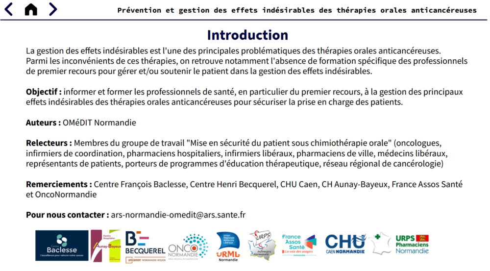 Effets indésirables des thérapies orales anticancéreuses : découvrez le e-learning normand et ses modules