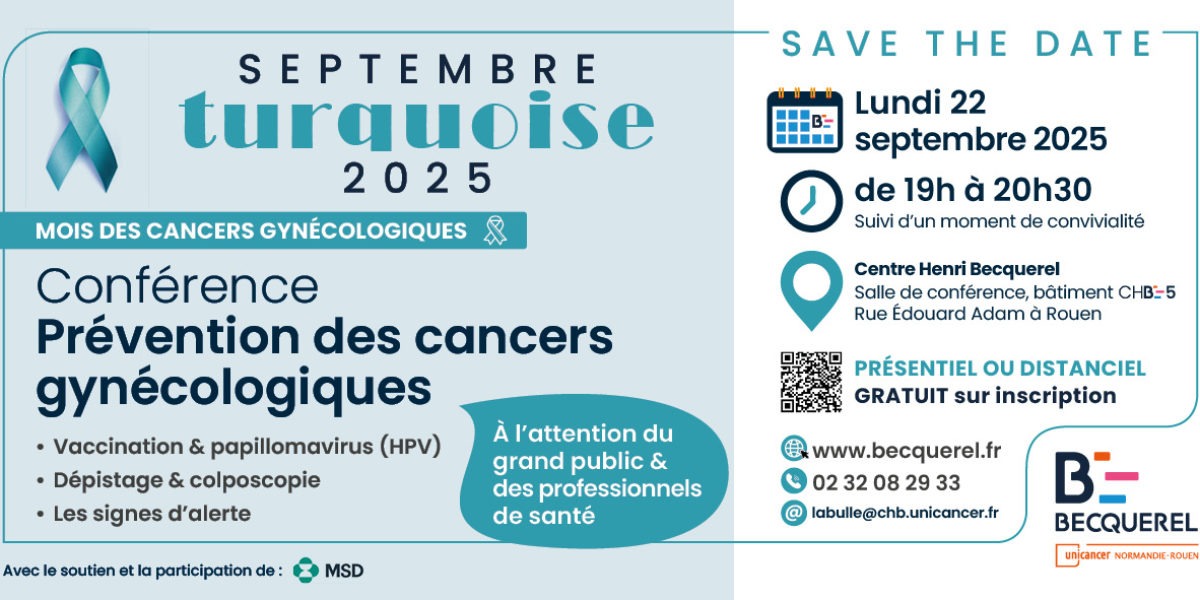 A l’occasion de Septembre Turquoise, mois de sensibilisation aux cancers gynécologiques, le Centre Henri Becquerel organise une conférence dédiée à la prévention des cancers gynécologiques.