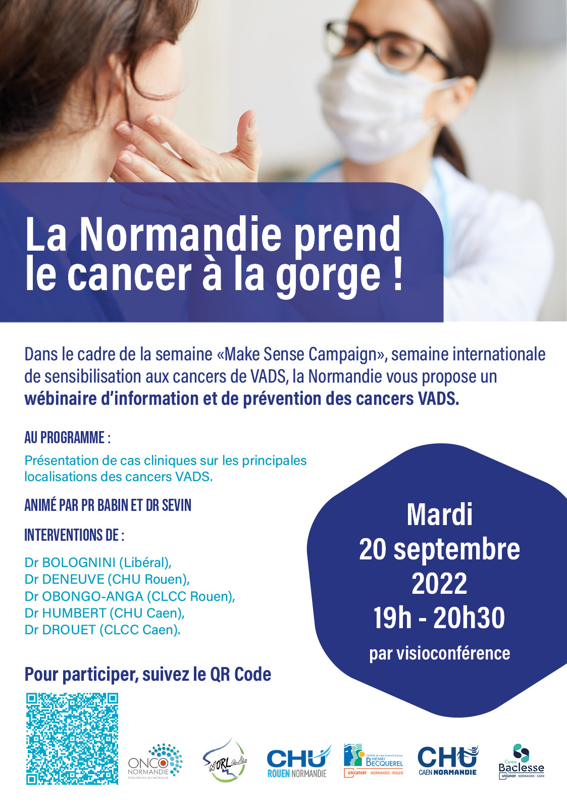 Dans le cadre de la semaine «Make Sense Campaign», semaine internationale de sensibilisation aux cancers de VADS, la Normandie vous propose un webinaire d’information et de prévention des cancers VADS :