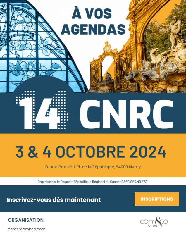 Le Congrès National des Réseaux de Cancérologie (CNRC) se tiendra les jeudi 3 et vendredi 4 octobre 2024 au Centre Prouvé à Nancy.