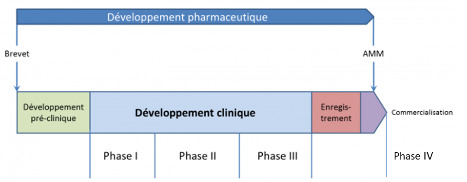Le développement clinique d’un médicament est divisé en 3 phases :