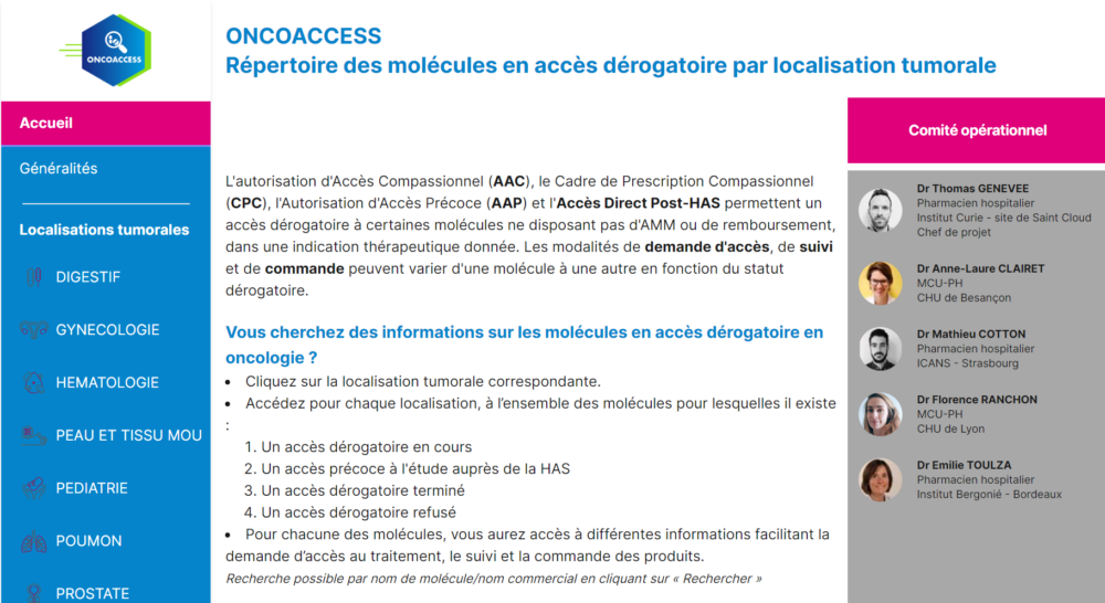 Découvrez ONCOACCESS, une nouvel outil web gratuit et libre d’accès qui centralise toutes les molécules en accès dérogatoire par localisation tumorale.